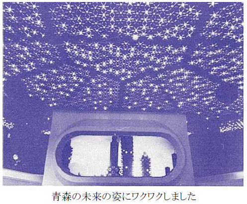 終盤で「未来の青森」を紹介する映像コーナーがあり、高層の居住スペースが映っていて、ふるさとがこんな風に発展できたらいいなぁと期待しました。